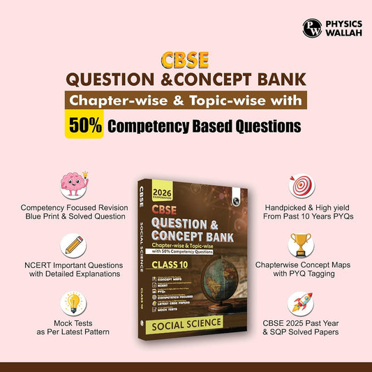Physics Wallah (PW) CBSE Question & Concept Bank Social Science for Class 10 - Chapterwise & Topic-wise (with 50% Competency Questions) - for 2026 Examinations