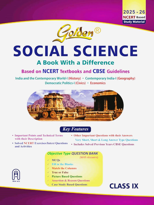 Golden Social Science Study Material Based on NCERT For Class 9 - Latest for 2025-26 Session. Paperback