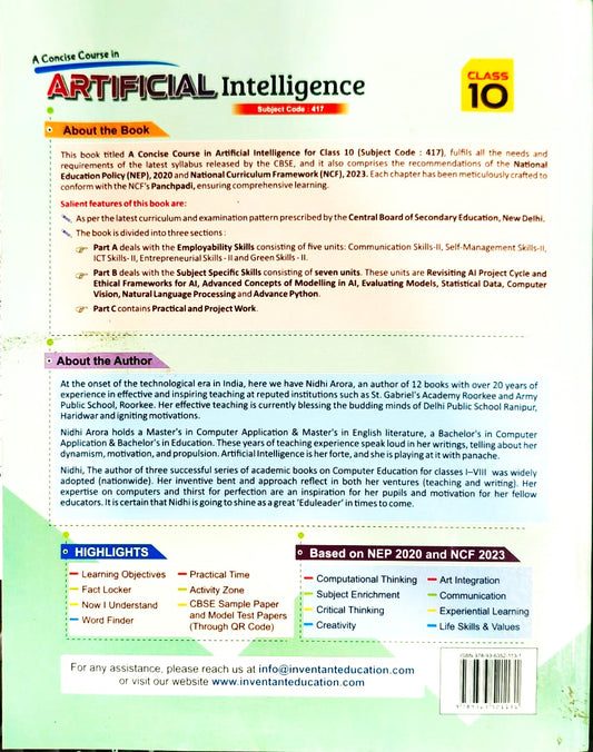 Inventant A Concise Course in Artificial Intelligence for Class 10 (Subject Code - 417) - Latest for 2025-26 Examination