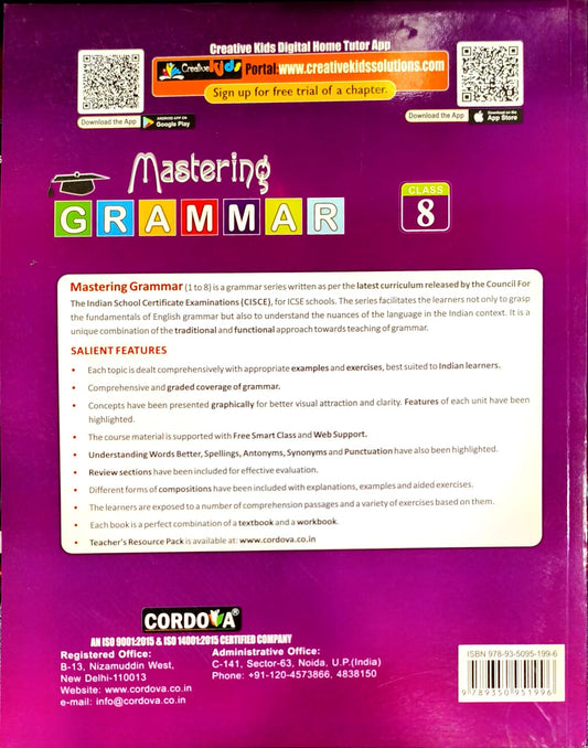 Cordova ICSE Mastering Grammar for Class 8 - Latest for 2026 Session. Paperback