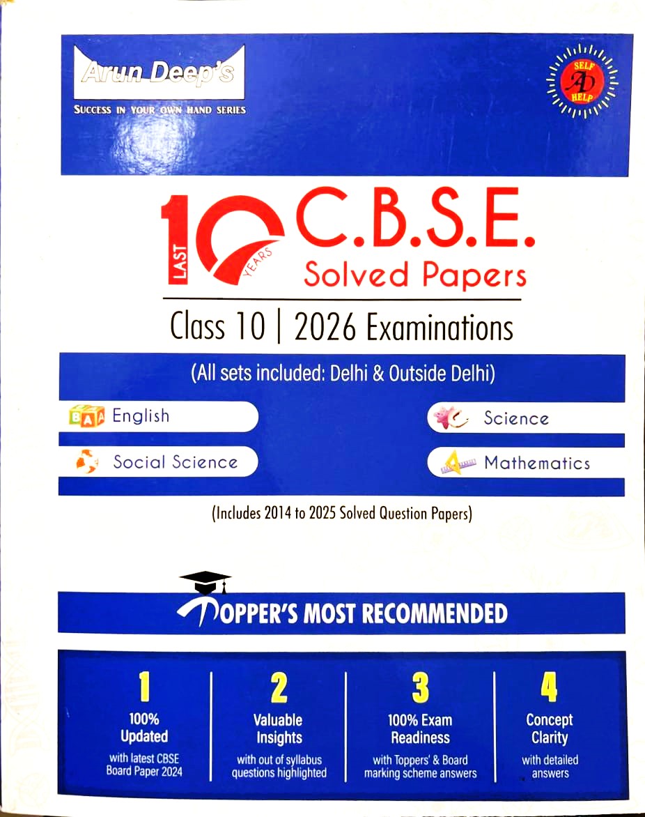 Arun Deep’s CBSE 10 Years Solved Papers For Class 10 - Latest for 2025-26 Session