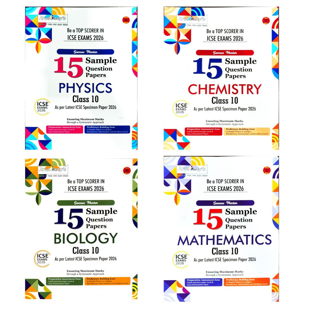 Arun Deep’s Success Mentor ICSE 15 Sample Question Papers of Physics, Chemistry, Biology & Mathematics for Class 10 - Set of 4 Books - For 2026 Examination. Paperback