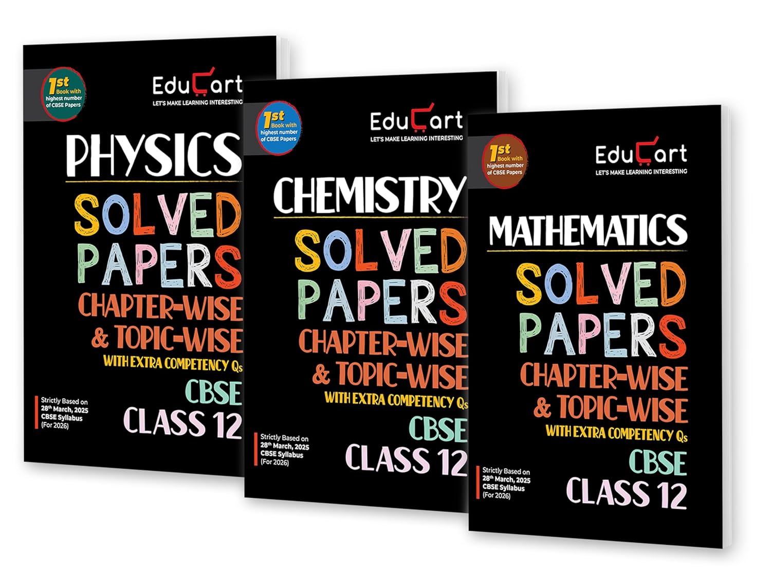Educart CBSE Solved Papers Chapter-Wise & Topic-Wise Chemistry, Mathematics & Physics for Class 12 - Set of 3 Books - Latest for 2025-2026 Session.