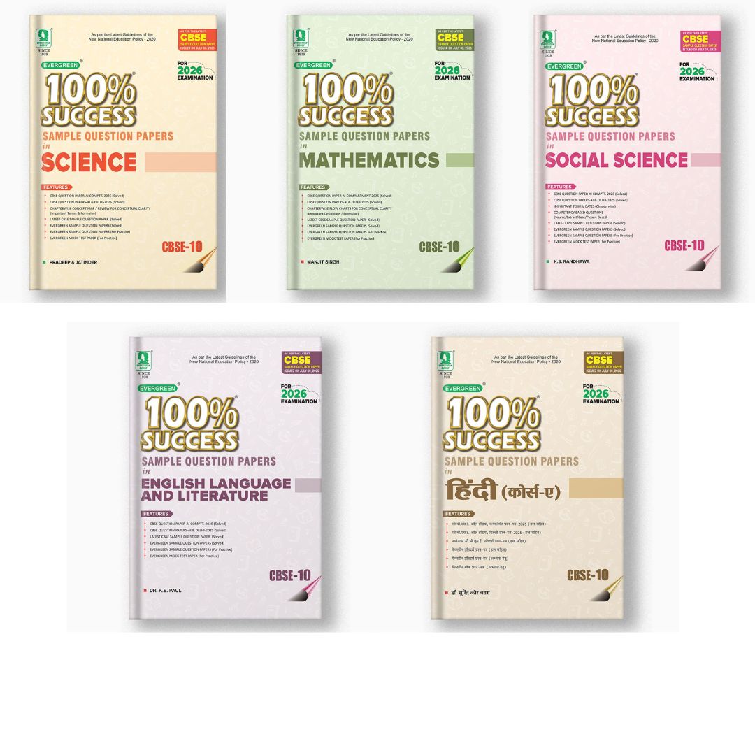 Evergreen CBSE 100% Success Sample Question Papers in Mathematics, English, Science, Hindi (Course A) and Social Science For Class 10 - Set of 5 Books - Latest For 2026 Examination - Paperback
