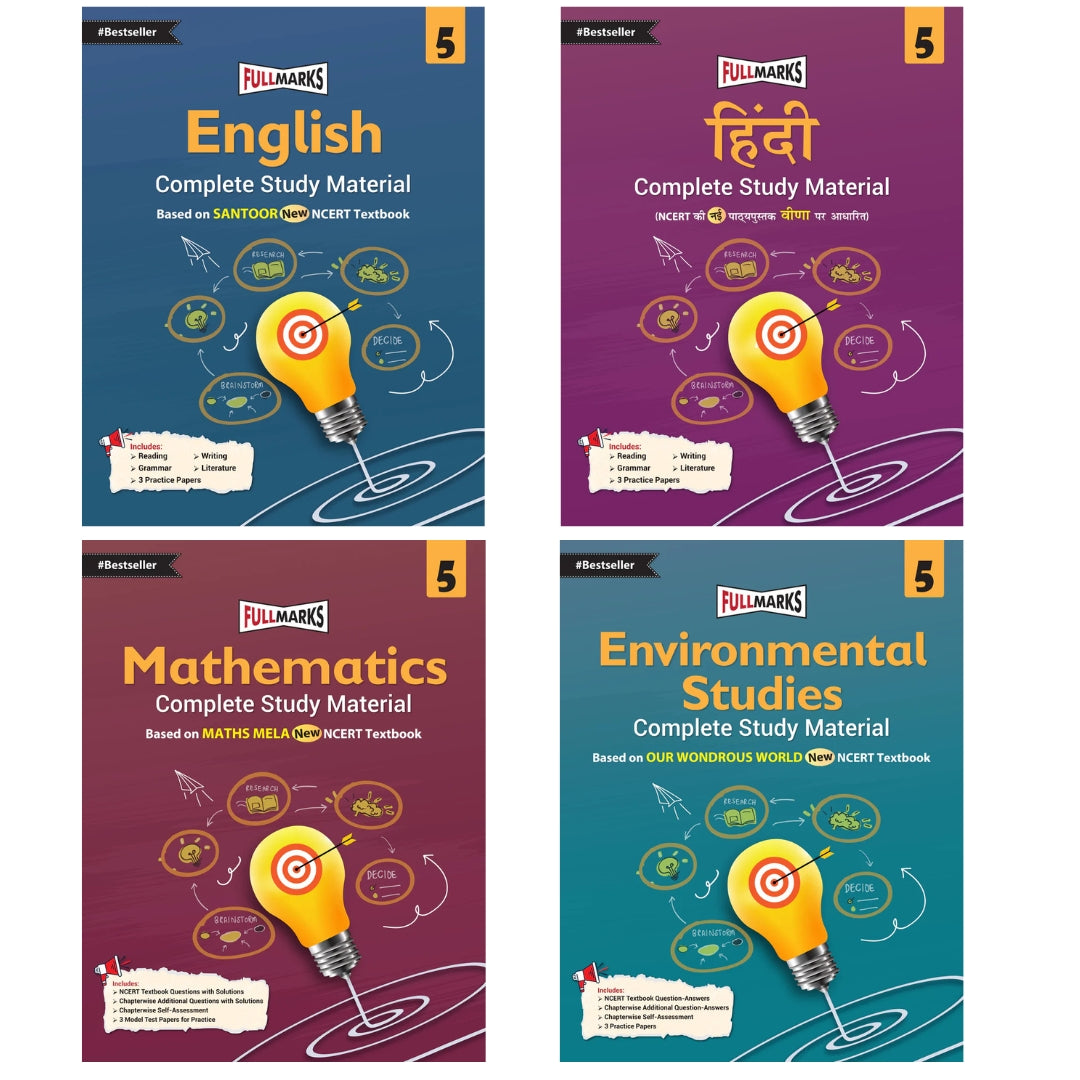 Full Marks CBSE Mathematics, English, Environmental Studies and Hindi (Complete Study Material) For Class 5 - Based on New NCERT Textbook Maths Mela, Santoor, Veena and Our Wondrous World - Latest for 2025-26 Session