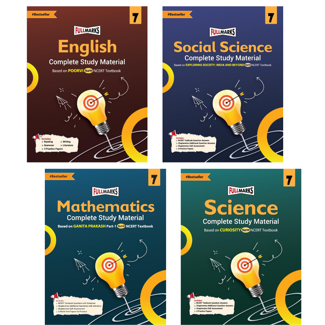 Full Marks Complete Study Material For Class 7 English (Poorvi), Math's (Ganita Prakash), Science (Curiosity), Social (Exploring Society: Indian & Beyond) Set of 4 Books Based on New NCERT Textbook and CBSE Syllabus - Latest for 2025-26 Session