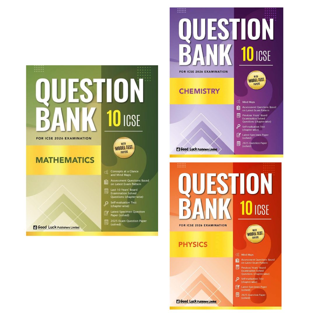 Good Luck ICSE Question Bank Physics, Chemistry, Math's (Combo of 3) Class 10 for Examination 2026 (Paperback)