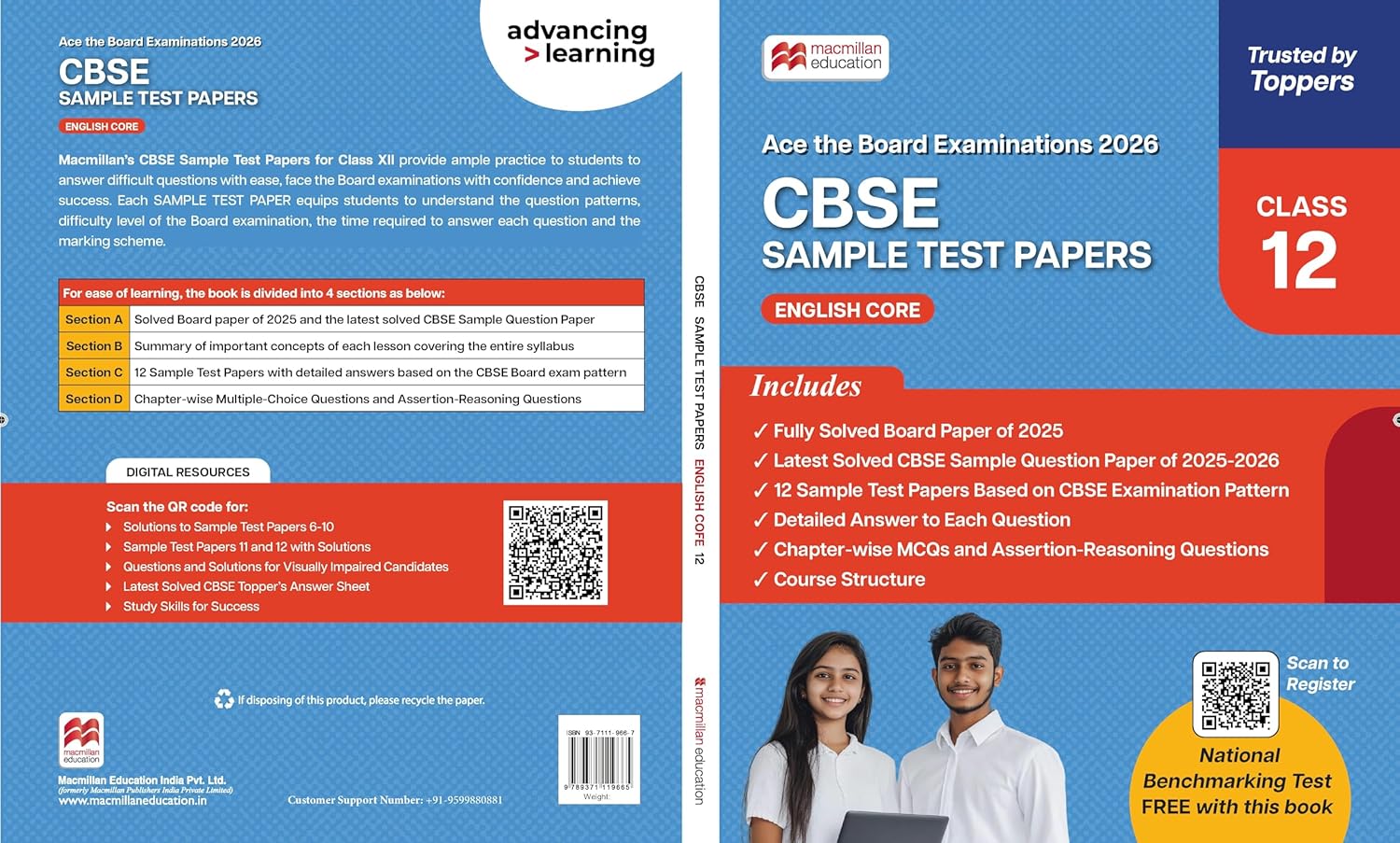 Macmillan’s CBSE Sample Test Papers – English Core (301) is your ultimate guide to mastering the board exam. This book is designed to help students tackle challenging questions, understand exam patterns, and improve time management.