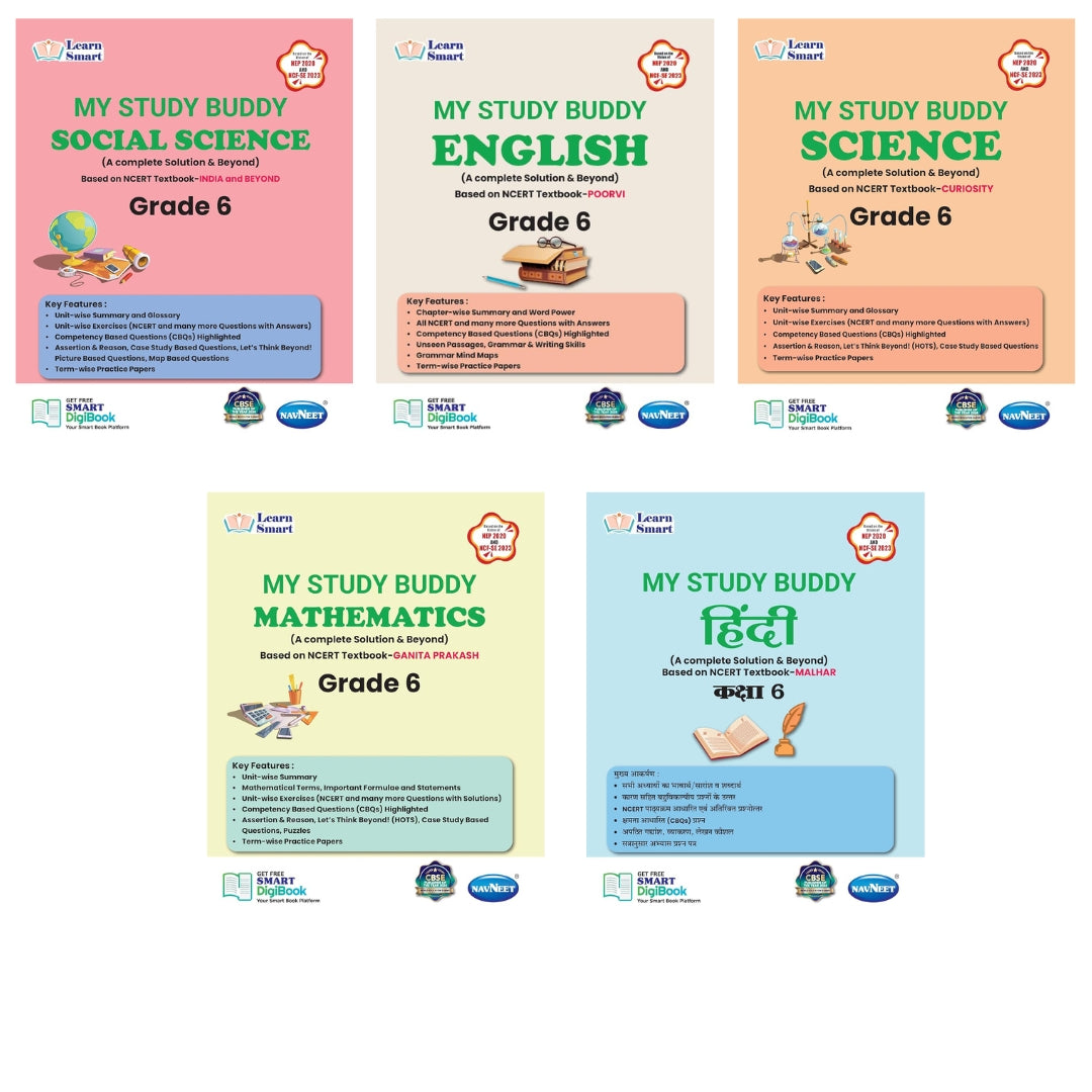 Navneet Learn Smart - My Study Buddy - English, Mathematics, Hindi, Science and Social Science for Class 6 (A complete Solution & Beyond) Based on NCERT Textbook _ Poorvi, Ganita Prakash, Curiosity, Malhar and India and Beyond - Set of 5 Books. Paperback