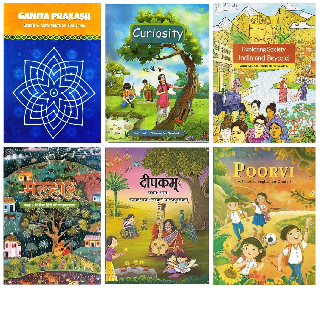 NCERT Ganita Prakash (Mathematics), Curiosity (Science), Exploring Society (Social), Malhar (Hindi), Deepakam (Sanskrit) & Poorvi (English) Textbook for Class 6 - Set of 6 Books - Latest Edition