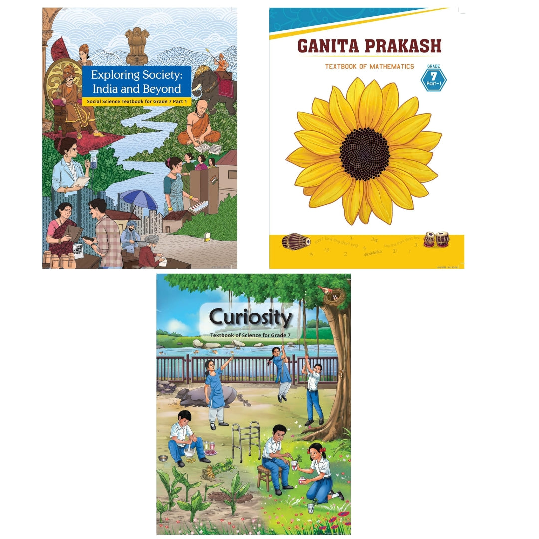 NCERT Ganita Prakash (Mathematics), Curiosity (Science) & Exploring Society (Social) Textbook for Class 7 - Set of 3 Books - Latest Edition