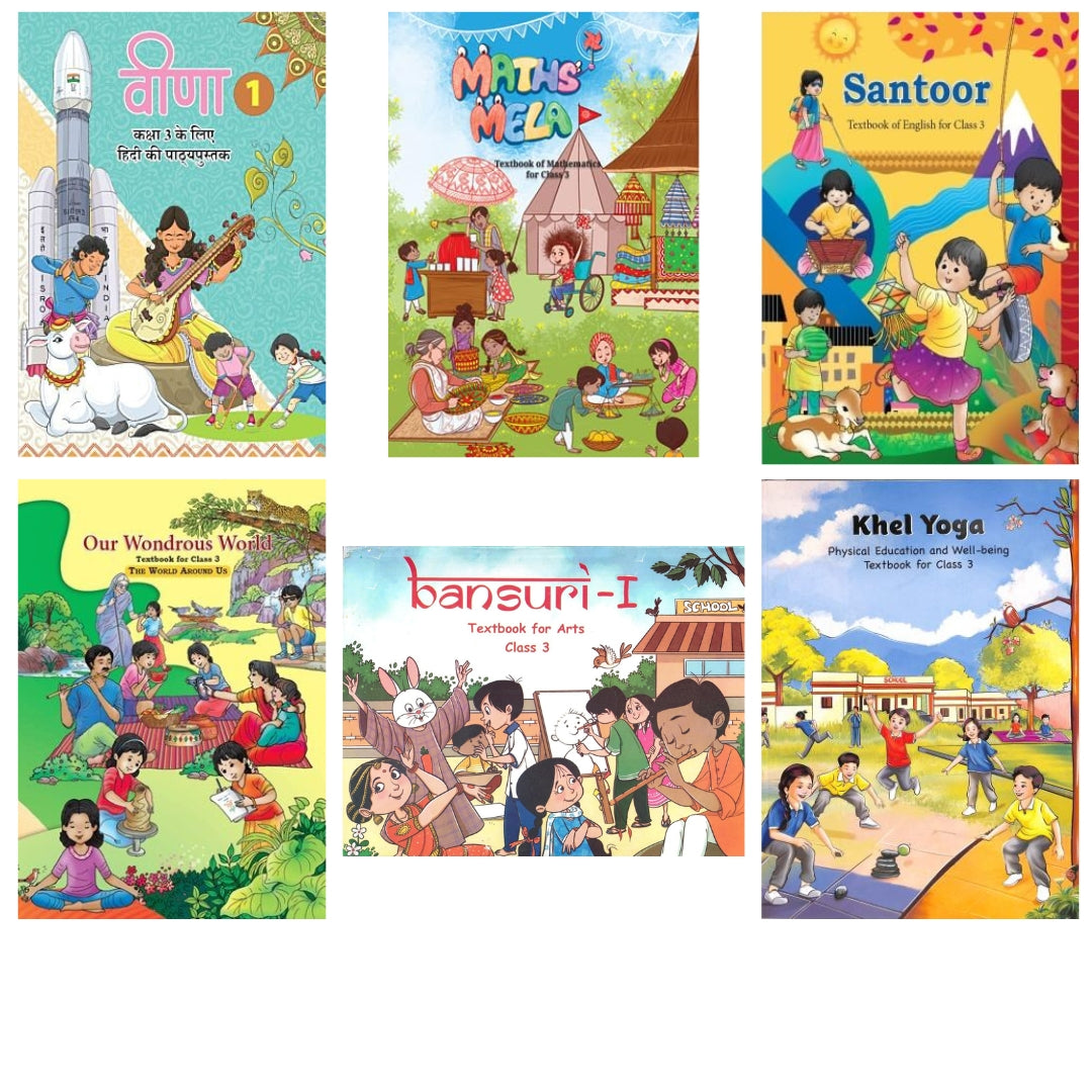 NCERT Santoor, Math's Mela, Veena, Our Wondrous World, Bansuri-1 & Khel Yoga Physical Textbook For Class 3 (Set of 6 Books) - Latest Edition