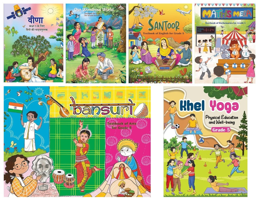 NCERT Santoor, Math's Mela, Veena, Our Wondrous World, Bansuri-1 & Khel Yoga Physical Textbook For Class 5 - (Set of 6 Books) - Latest Edition