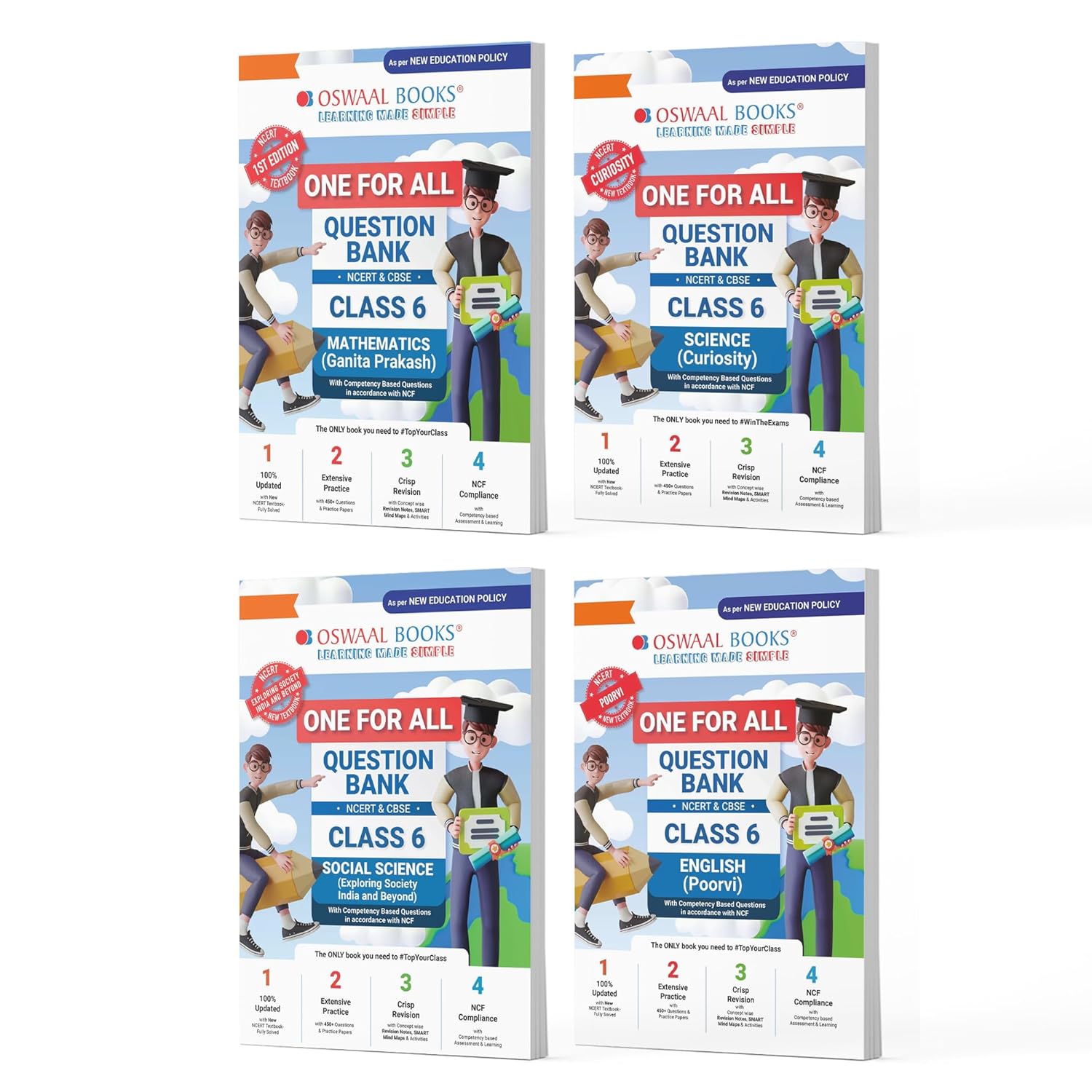 Oswaal CBSE & NCERT One for All Question Bank Math's, Science, Social Science & English - Set of 4 books - for Class 6