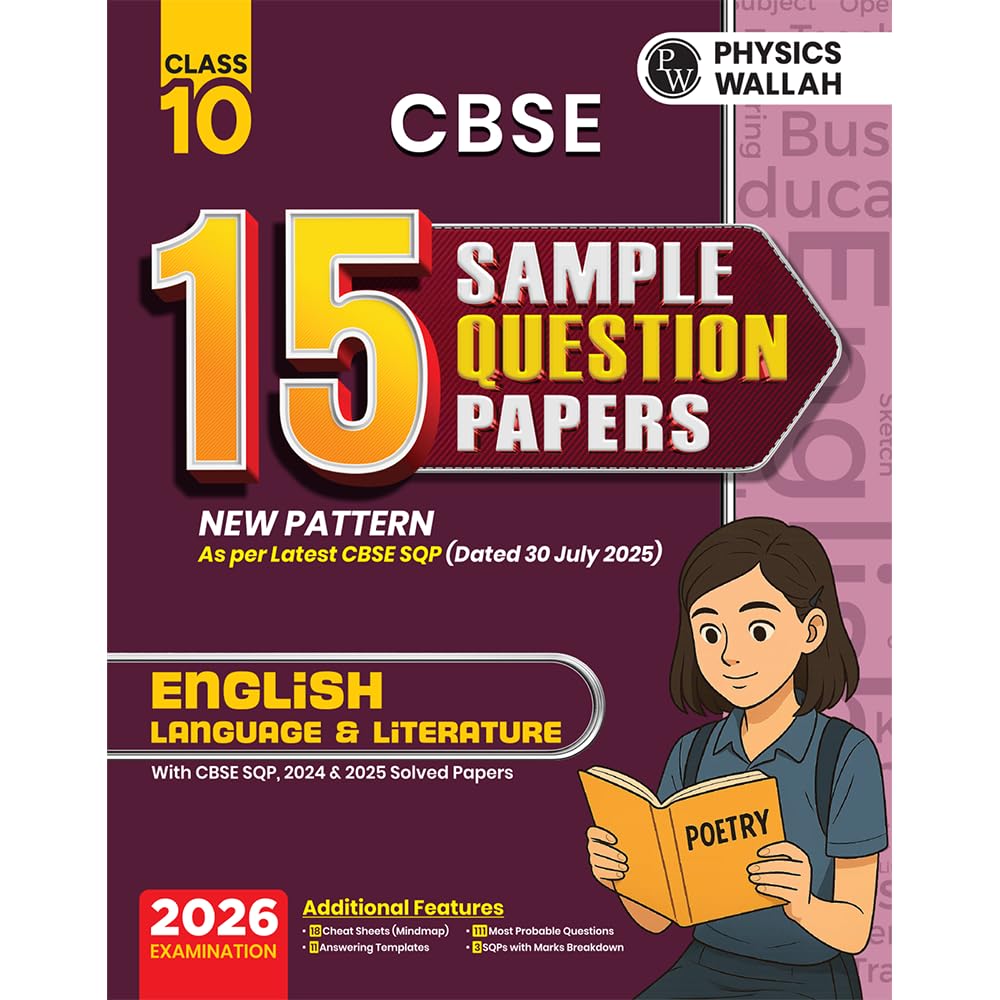 Physics Wallah (PW) CBSE 15 Sample Question Papers English, Science and Math's (Standard) for Class 10 - Set of 3 Books