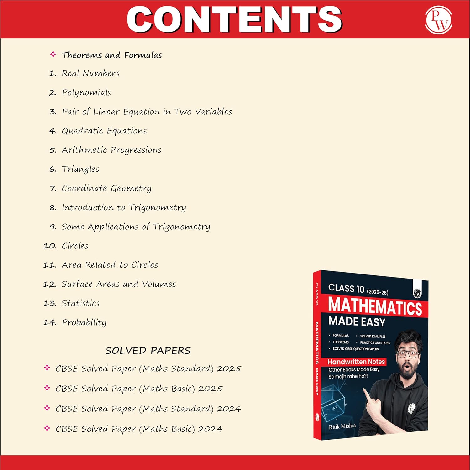 Physics Wallah (PW) CBSE Mathematics Made Easy Handwritten Notes By Ritik Mishra for Class 10 - Latest Edition
