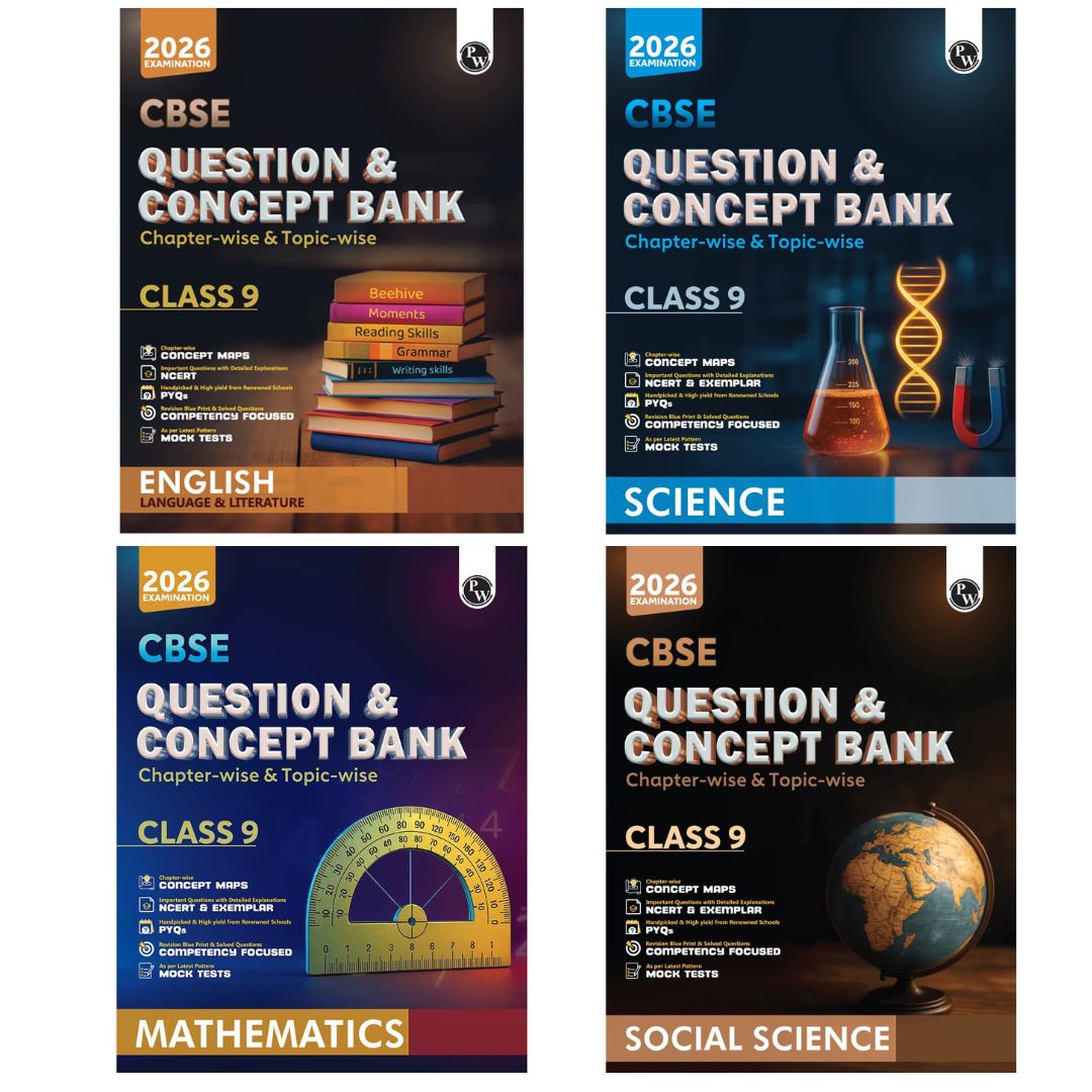 Physics Wallah (PW) CBSE Question Bank Mathematics, Science, Social Science, English Language & Literature For Class 9 (Set of 4 Books) - Latest For 2026 Examination