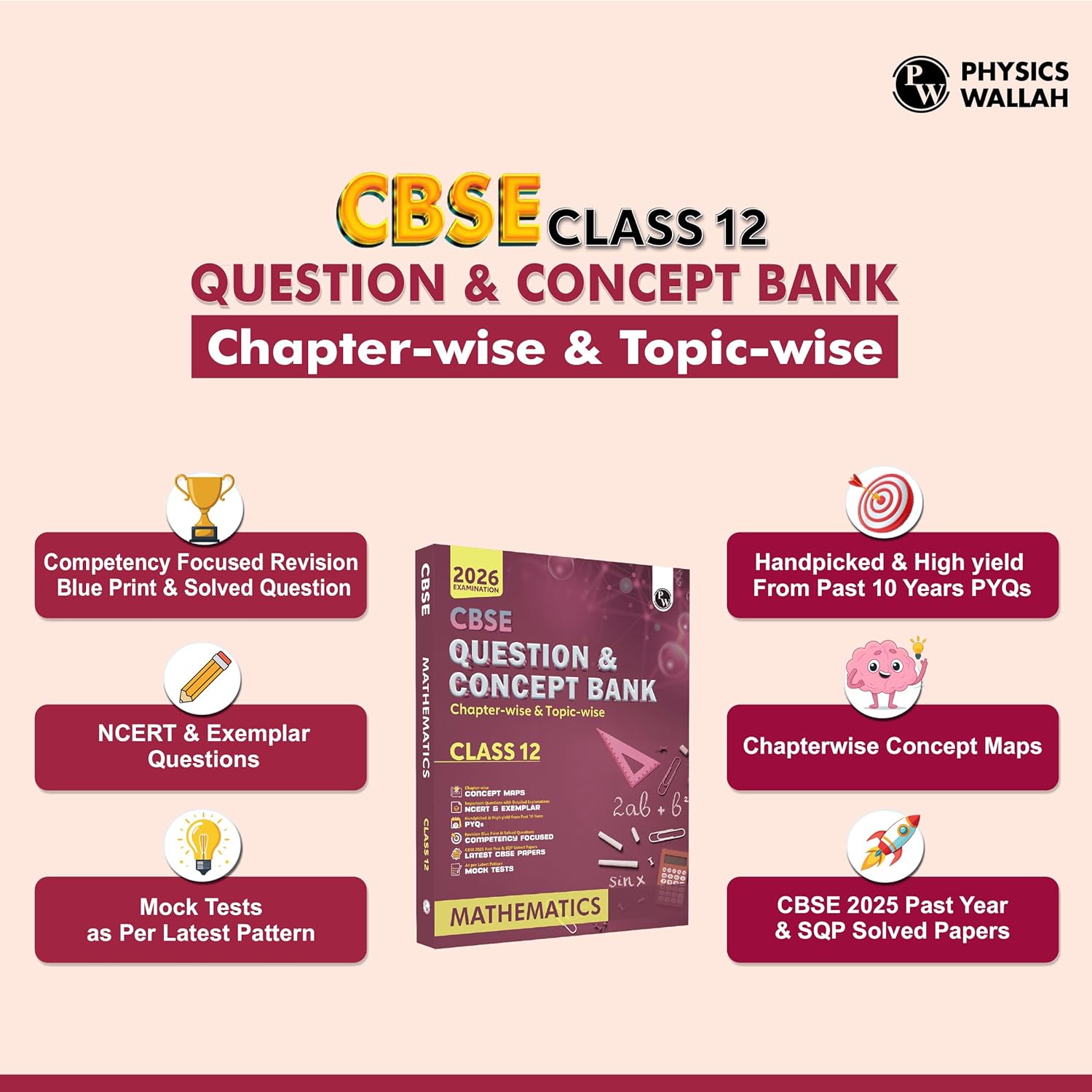 Physics Wallah (PW) CBSE Question & Concept Bank Mathematics Class 12 - Latest For 2026 Examination