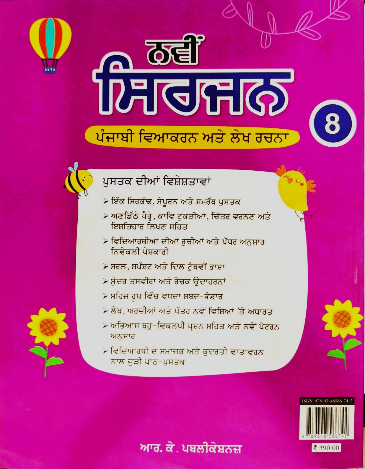 RK Navi Sirjan Punjabi Vyakaran ate Lekh Rachna for Class 8