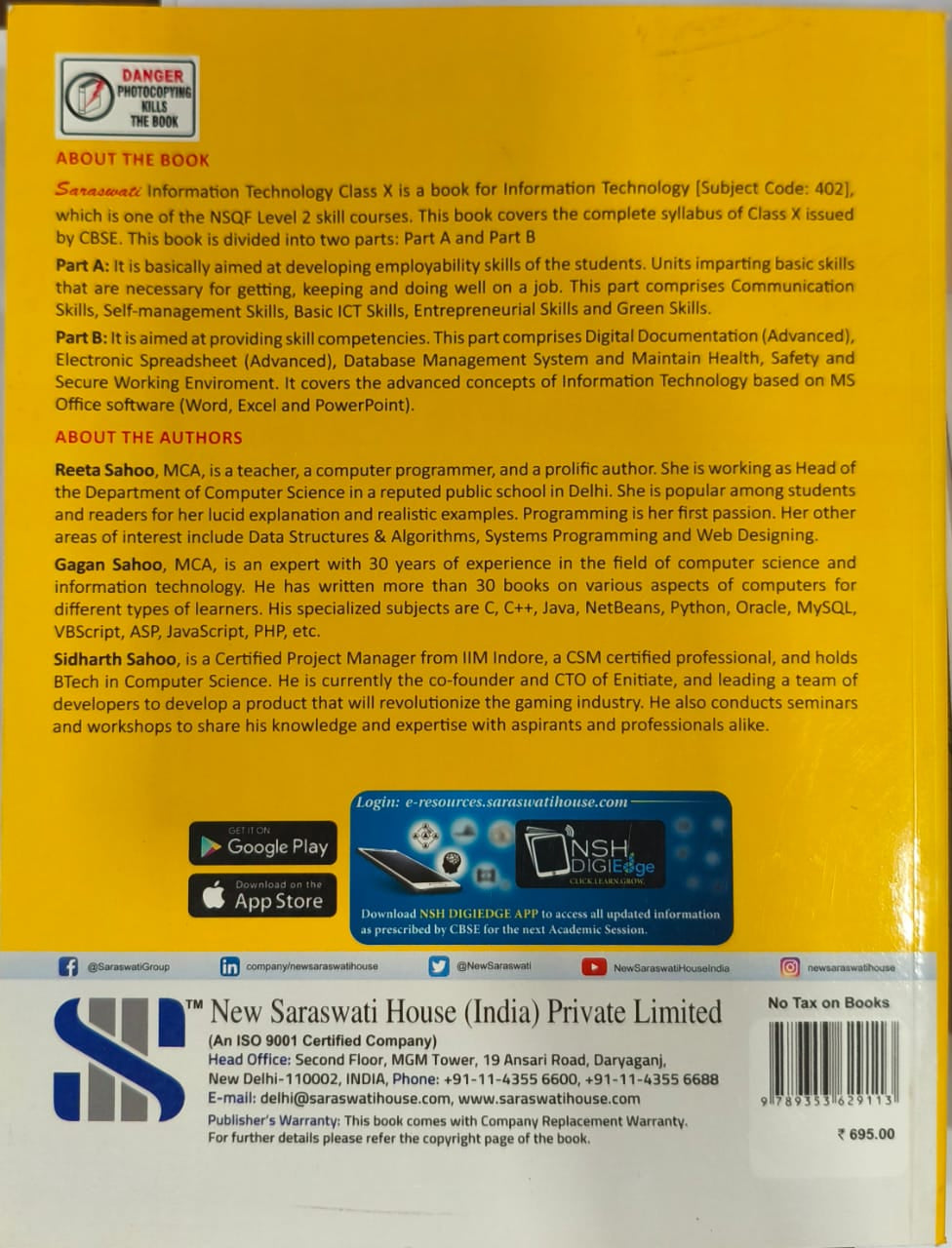 Saraswati Information Technology Textbook with Lab Activities for Class 10 - Based on Latest CBSE Curriculum (Under NSQF) Prescribed by CBSE, New Delhi - Latest for 2025-26 Examination. Paperback